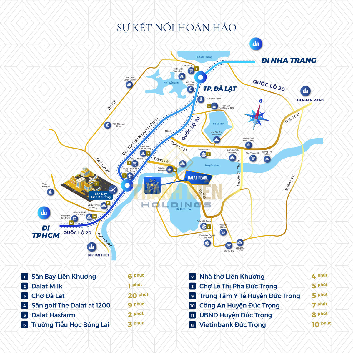 Bên cạnh hệ thống tiện ích nội khu vượt trội, dự án còn sở hữu một hệ thống tiện ích ngoại khu nằm tại Lâm Đồng như: