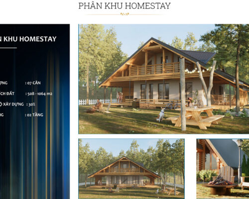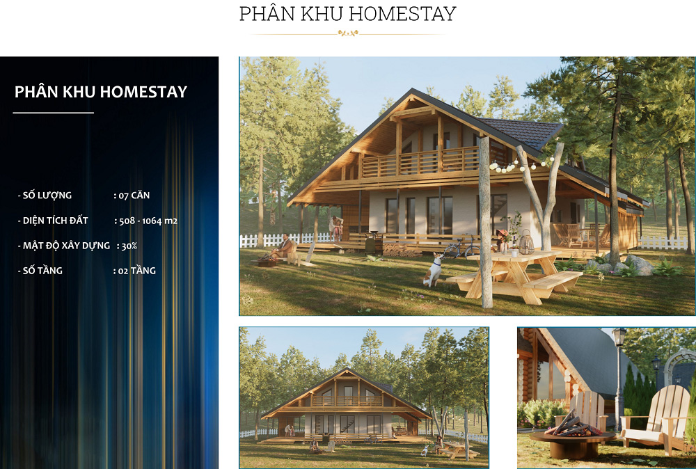 - Với những ai yêu thích thiết kế kiến trúc homestay, phân khu Homestay chiếm từ 508m2 tới hơn 1000m2