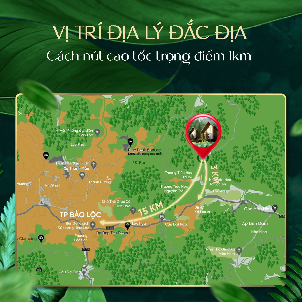 - Liên kết vùng thuận lợi: chỉ vài phút di chuyển đến Tu viện Bát Nhã, Đồi chè Tam Châu, Thác Đam B’Ri và Chùa Linh Quy Pháp Ấn – những điểm đến nổi tiếng của Bảo Lộc.