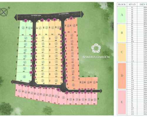 Sakura Garden là dự án đất nền biệt thự vườn tọa lạc tại số 134 Phùng Hưng, Phường Lộc Tiến, TP. Bảo Lộc, tỉnh Lâm Đồng với quy mô 1,2 Ha gồm 57 lô đất nền, diện tích dao động từ 201 – 263 m2 do Công ty Công ty Alpha Land làm chủ đầu tư.