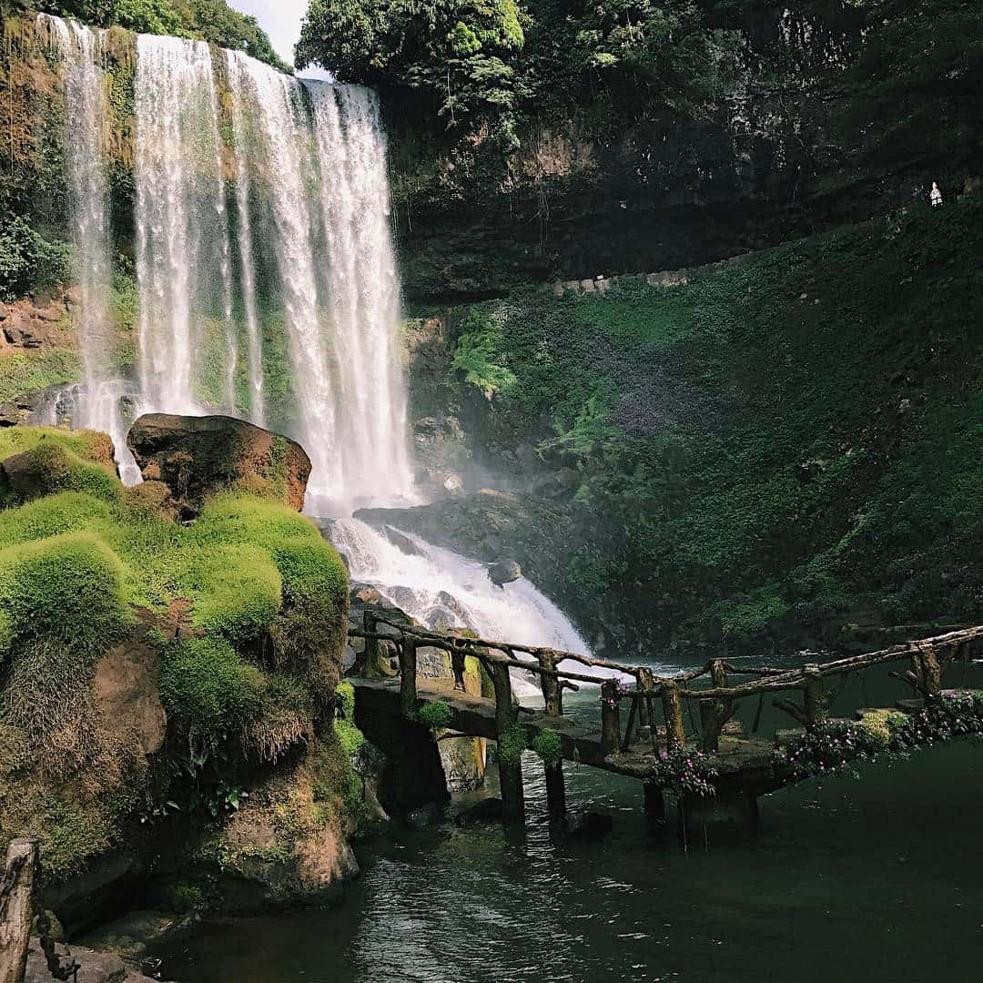 Thác Dam B’ri nằm cách trung tâm thành phố Bảo Lộc tầm khoảng 18km. Ngọn thác này là con thác hùng vĩ nhất tỉnh Lâm Đồng với chiều cao gần 57m, chiều rộng là 30m. Nhìn từ dưới chân thác, bạn sẽ thấy những lớp bọt tung trắng xóa mờ ảo, cũng tại đây, bạn sẽ có cơ hội chiêm ngưỡng cầu vồng vô cùng ấn tượng ngay dưới chân mình. Cây cầu nhỏ bám rêu phong nối hai bên bờ cũng là nơi được các khách du lịch chụp ảnh rất nhiều bởi vẻ lãng mạn của nó.